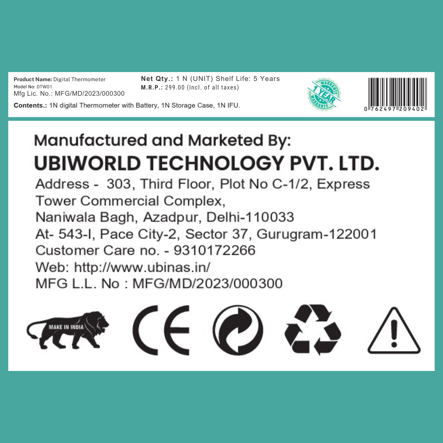 The Ubinas Waterproof Digital Thermometer is a dependable and hygienic fever-monitoring solution designed for infants, children, and adults. Built with a fully waterproof body, it allows easy washing and safe disinfection after every use, ensuring maximum hygiene and long-term durability.